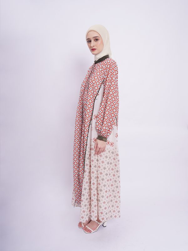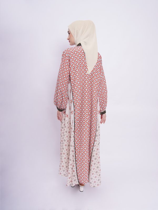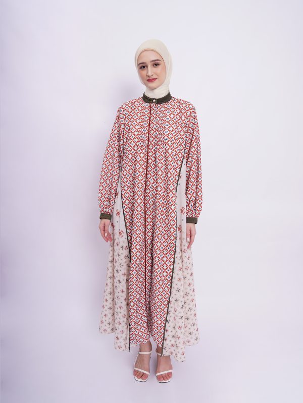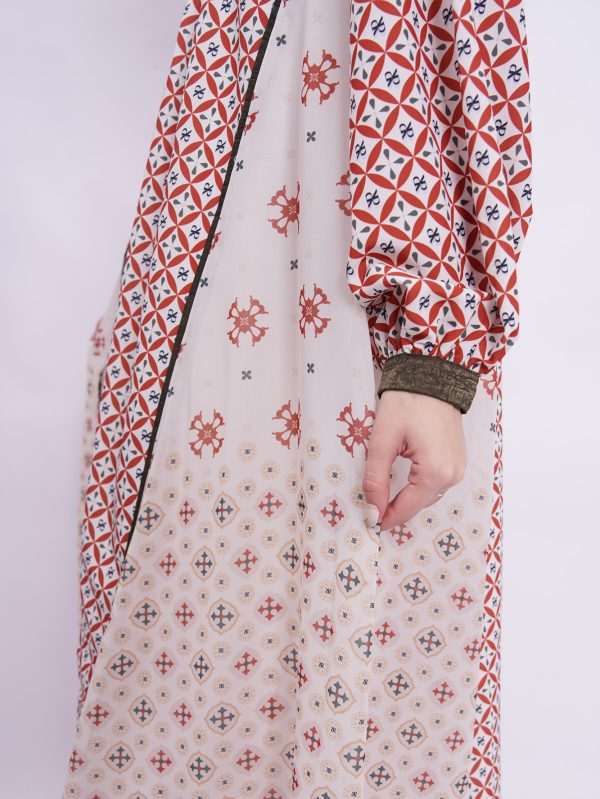 • An asymmetrical cut with a combination of patterns and using unique fabric as a combination is the best choice for the collar, cuffs and list of details on the left and right sides of the body.