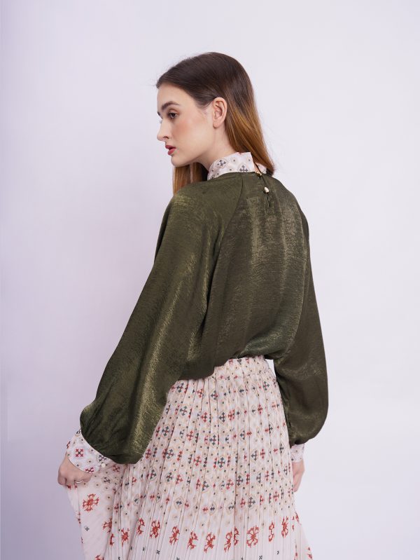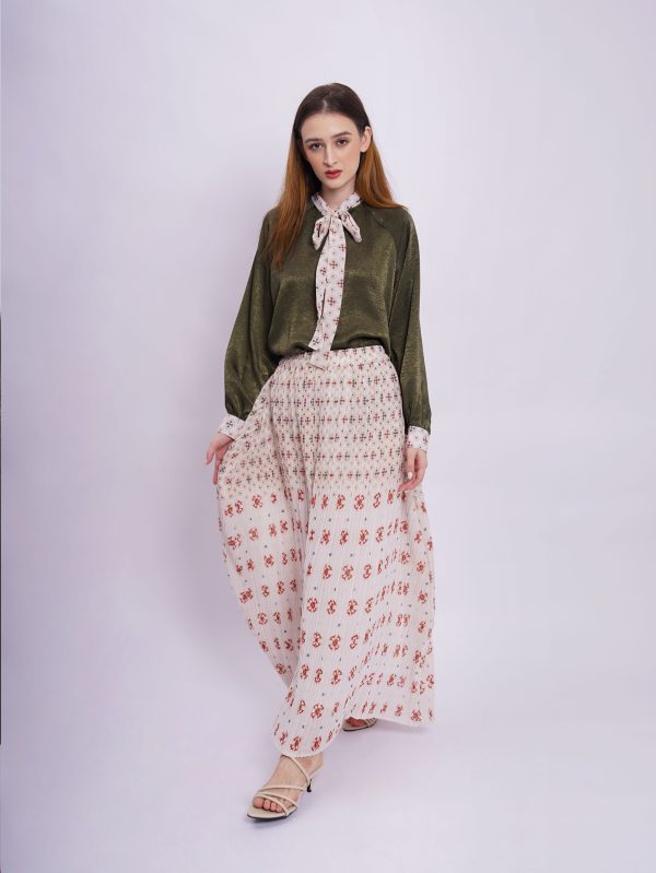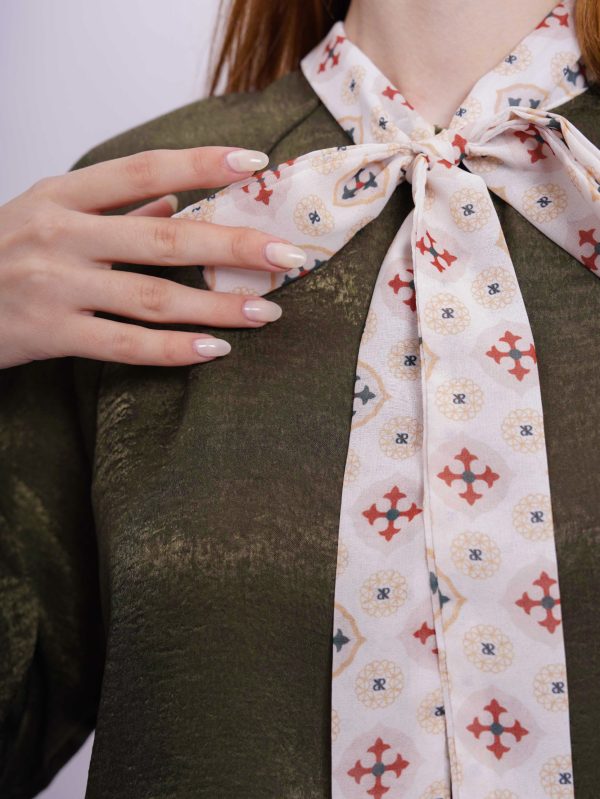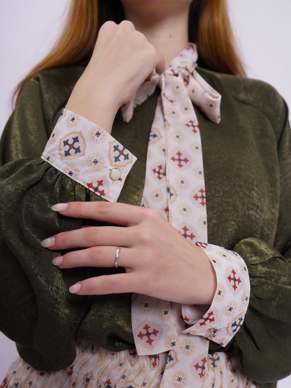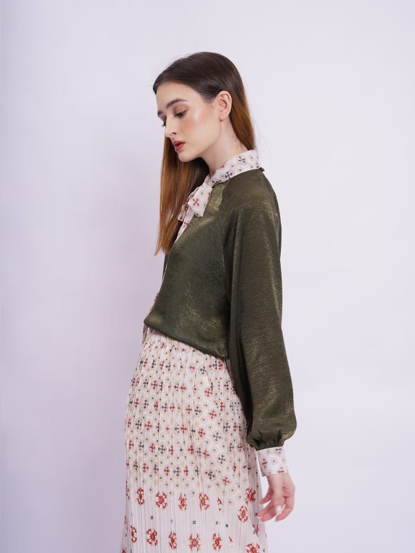 - A long sleeve with detail tie bow on the neck with buttons on the back, combination between premium silk and polyester print with Adjustable cuff. It’s perfect for special occasion.